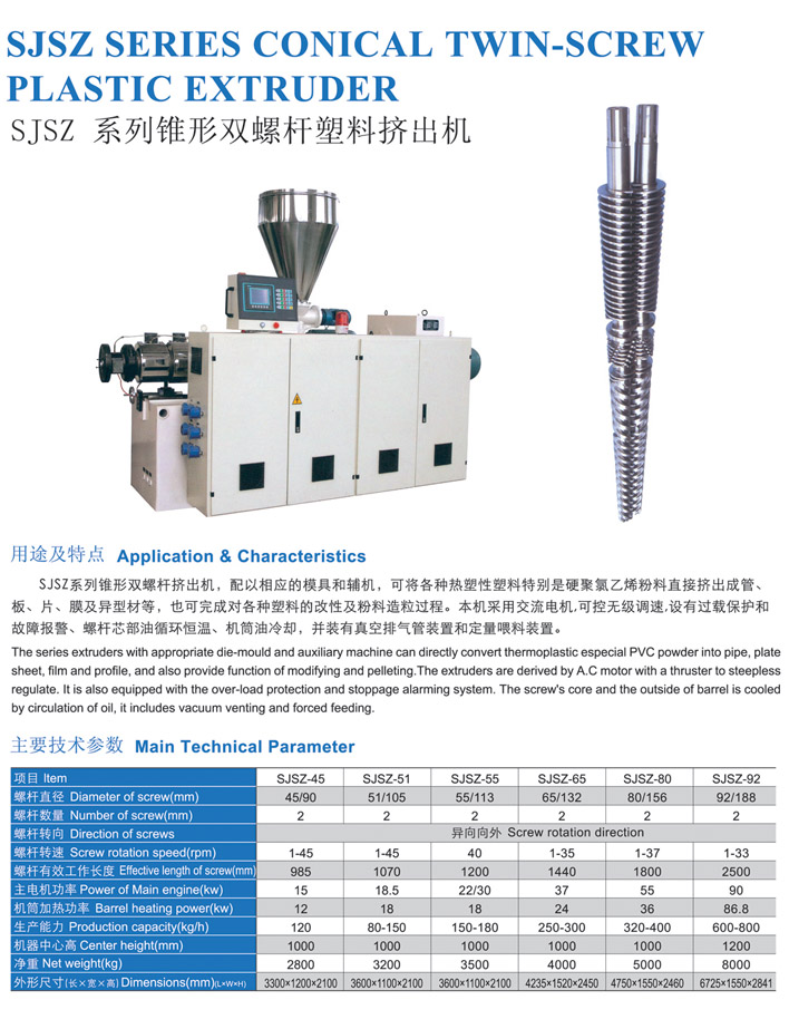 產(chǎn)品名稱(chēng):SJSZ系列錐形雙螺桿塑料擠出機